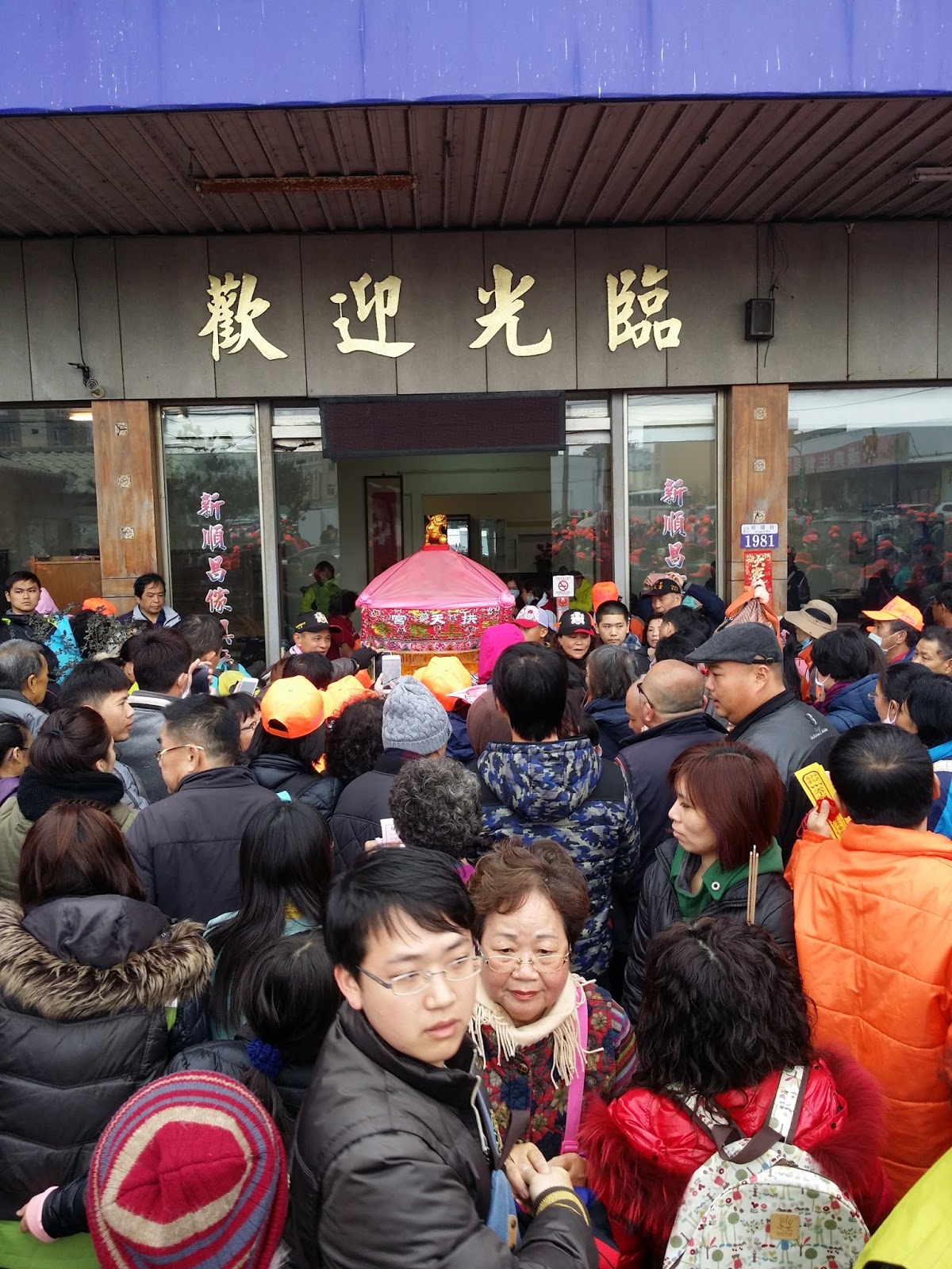 用擠的 在外面廣場進不去了 用手拜拜 跟媽祖問好