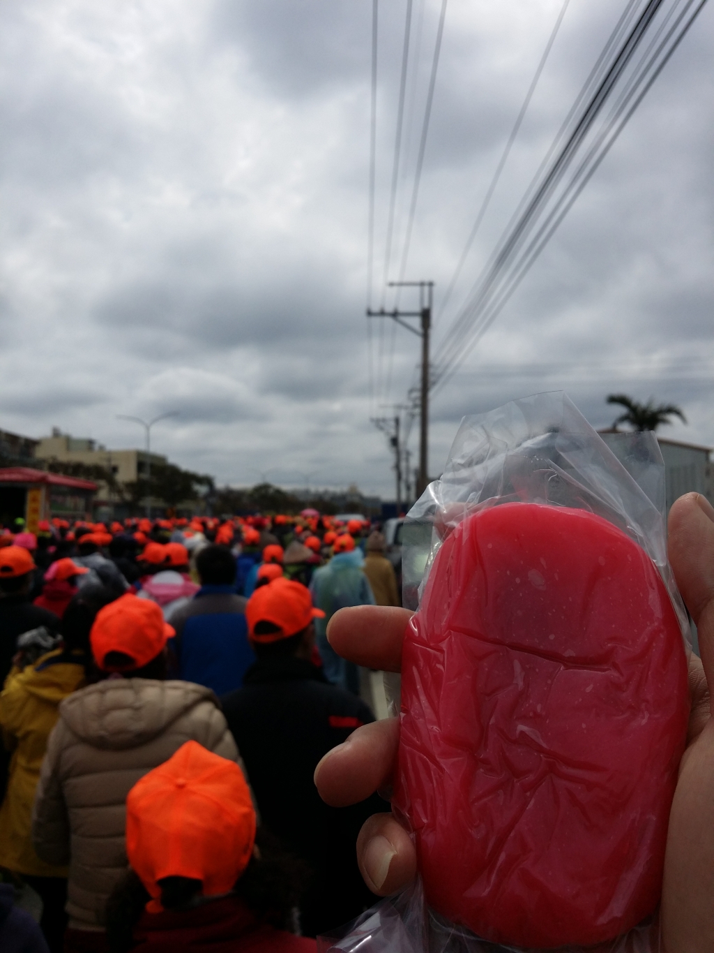 好多亮橘色帽子 一直綿延到地平線